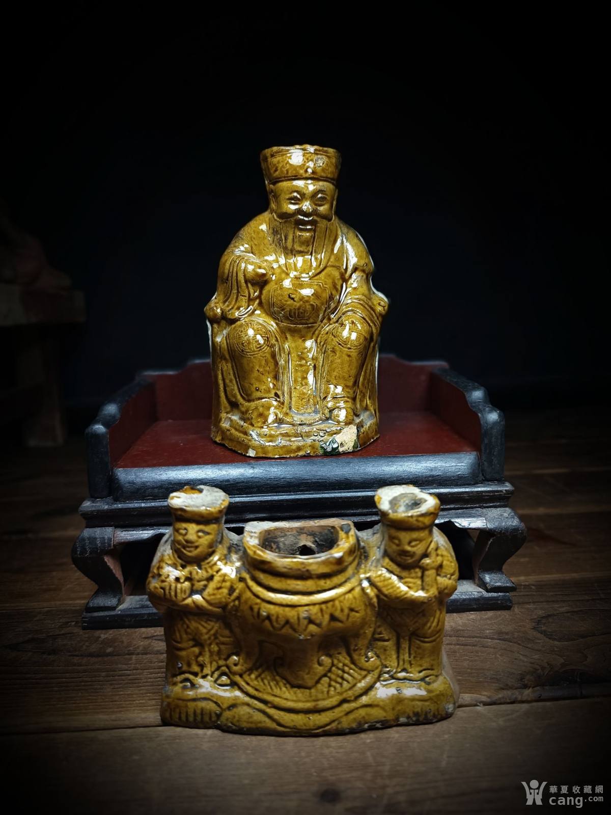 民国磁灶窑 福德正神 土地公 老香炉 香插一套 品相如图实物