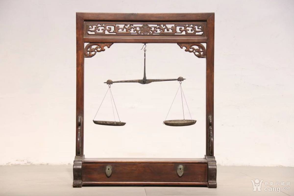 酸枝木 红木•天平秤; 秤架 盘为铜制,保存完好 ,做工讲