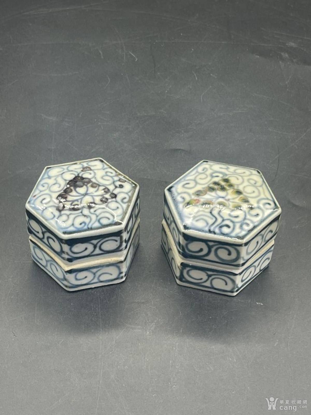 明青笔洗一对,器型规整,瓷质洁白。画工精湛,做工精细,