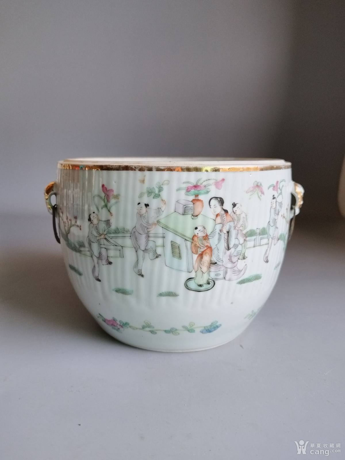 晚清瓜棱型粉彩人物麒麟送子罐底