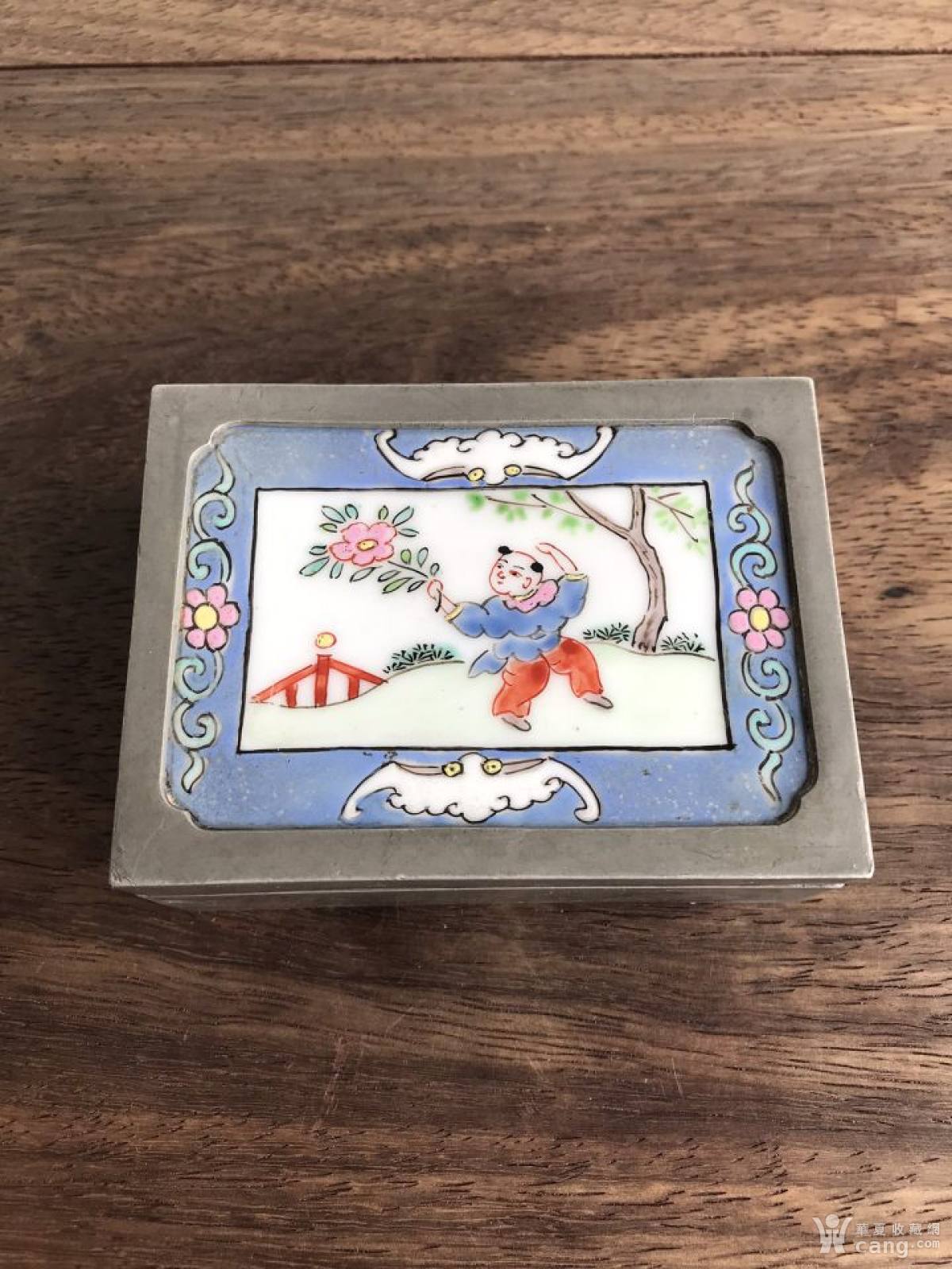 晚清锡嵌人物瓷板盖盒