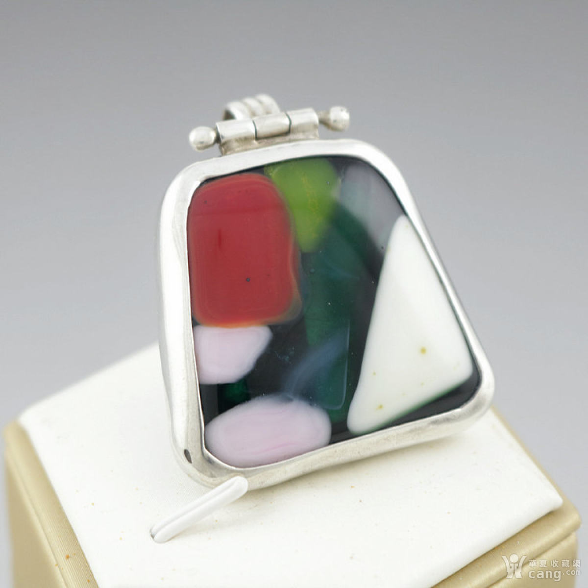 【西洋古董收藏品】法国创意撞色方形超大纯银吊坠