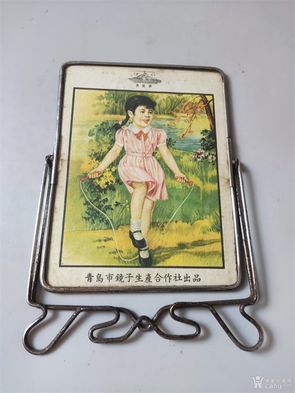 建国初期青岛市镜子生产合作社出品跳绳的儿童图玻璃镜子