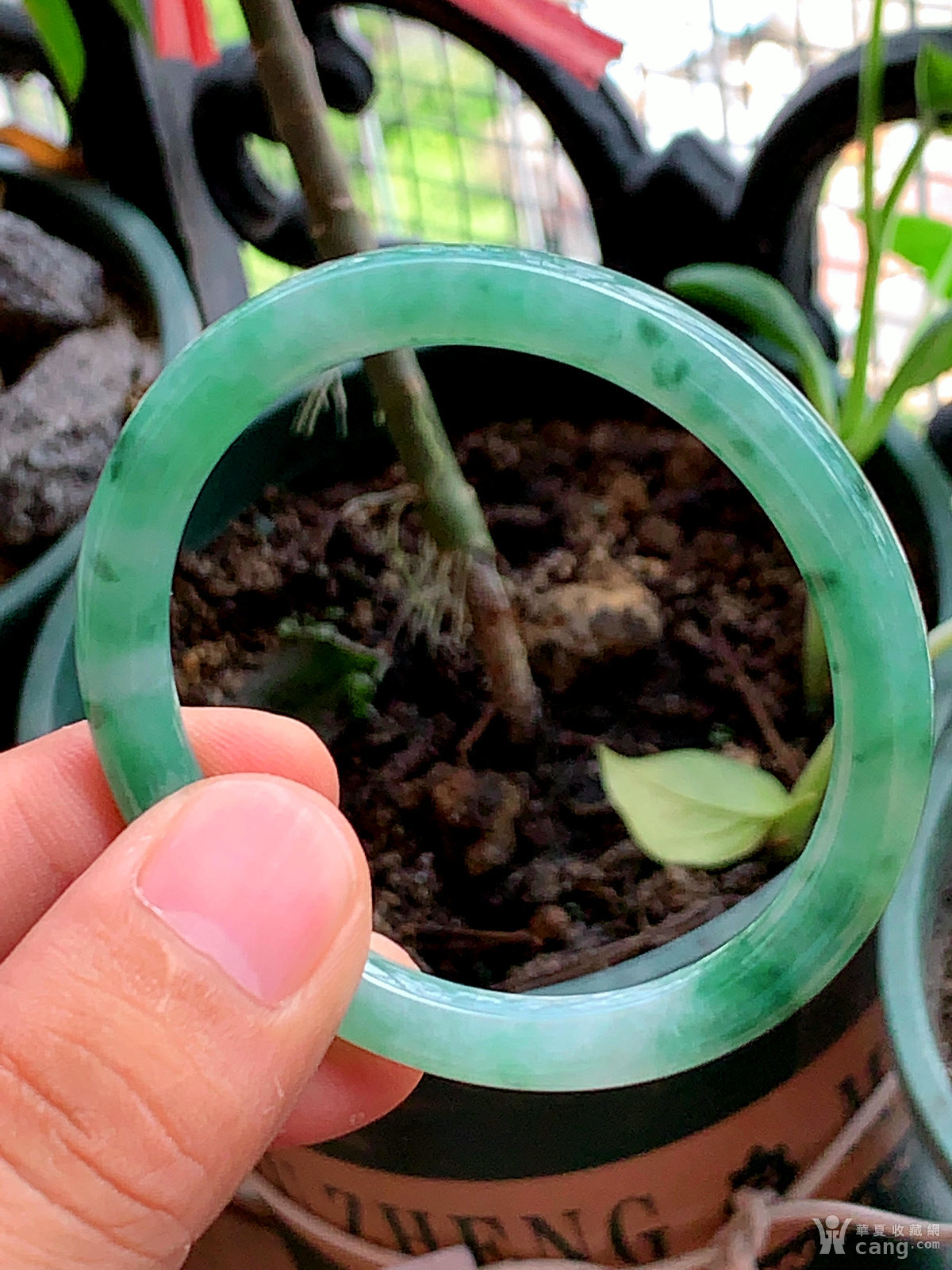 缅甸天然翡翠A货冰透水润飘花圆条手镯53.2圈口