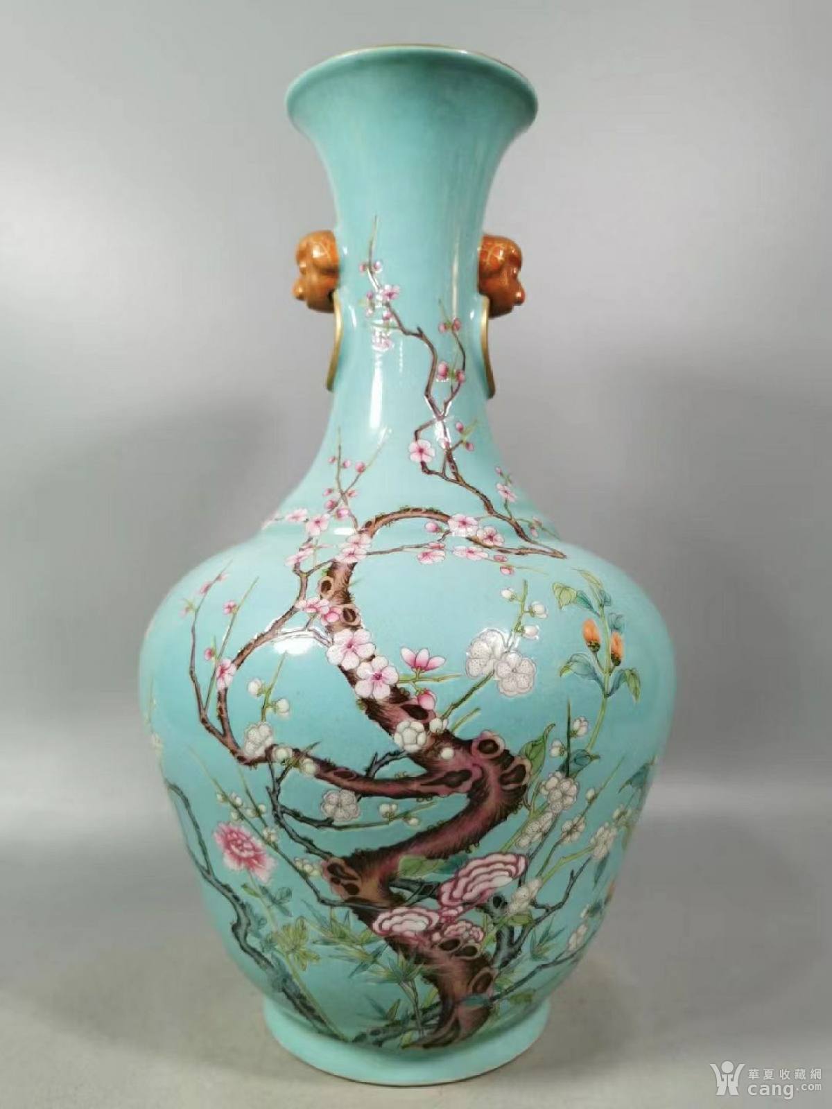 创汇时期仿乾隆松石绿釉梅花花瓶