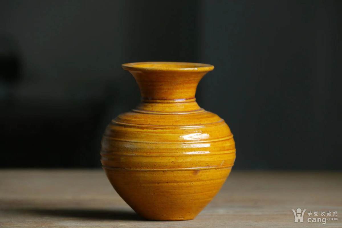 【 插花器•黄釉罐 】 此器阔口,鼓腹,器型饱满圆润,整器