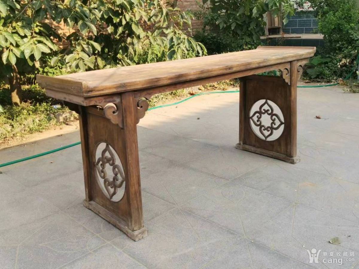 清中期小云头书案,小翘头两腿中间四如意桃相联,装心板为柏木,
