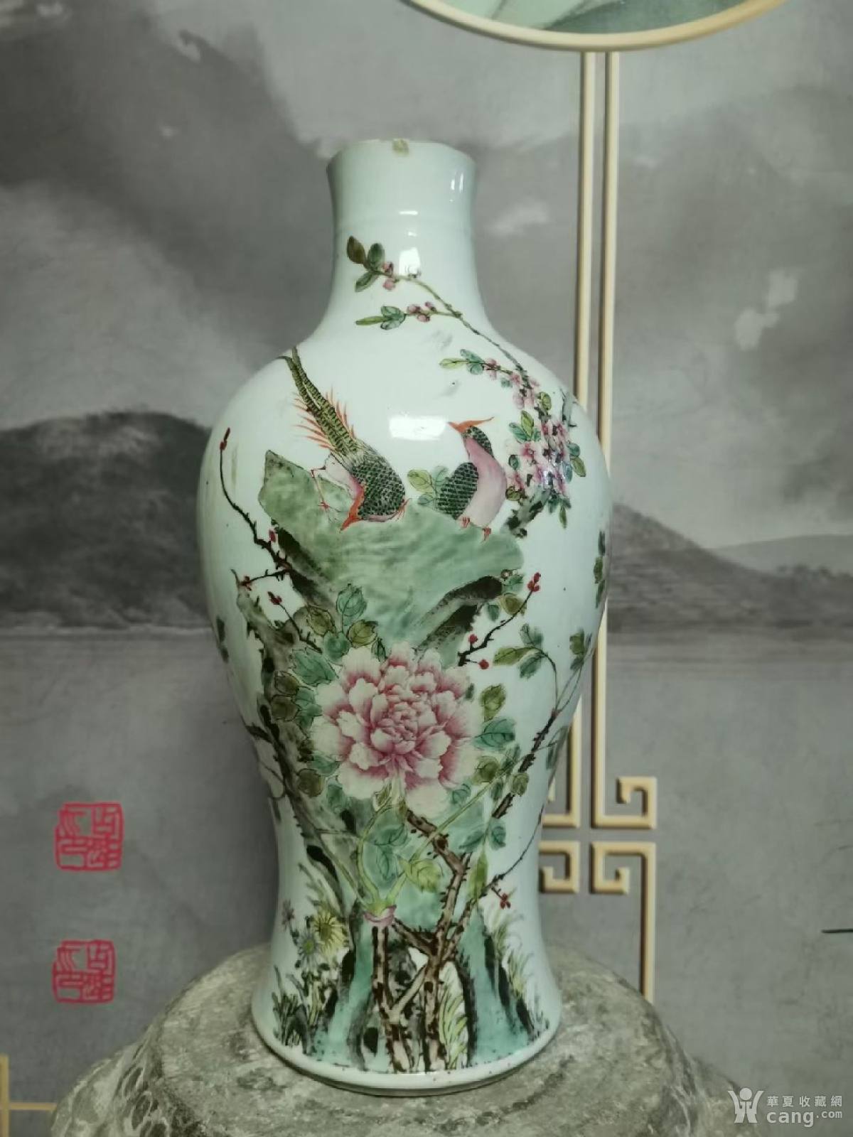 民国洪宪彩雉鸡牡丹锦堂富贵纹观音瓶