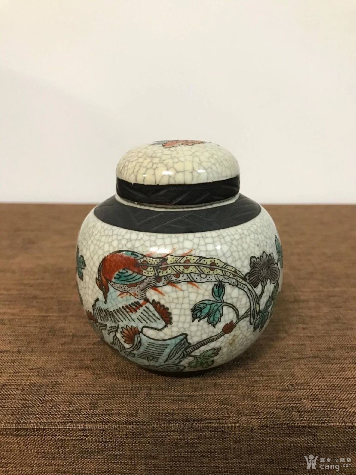 民国哥釉花鸟盖罐
