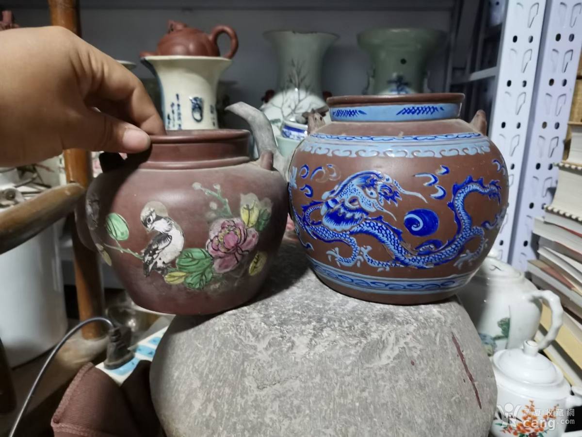 清代龙纹紫砂加彩茶壶