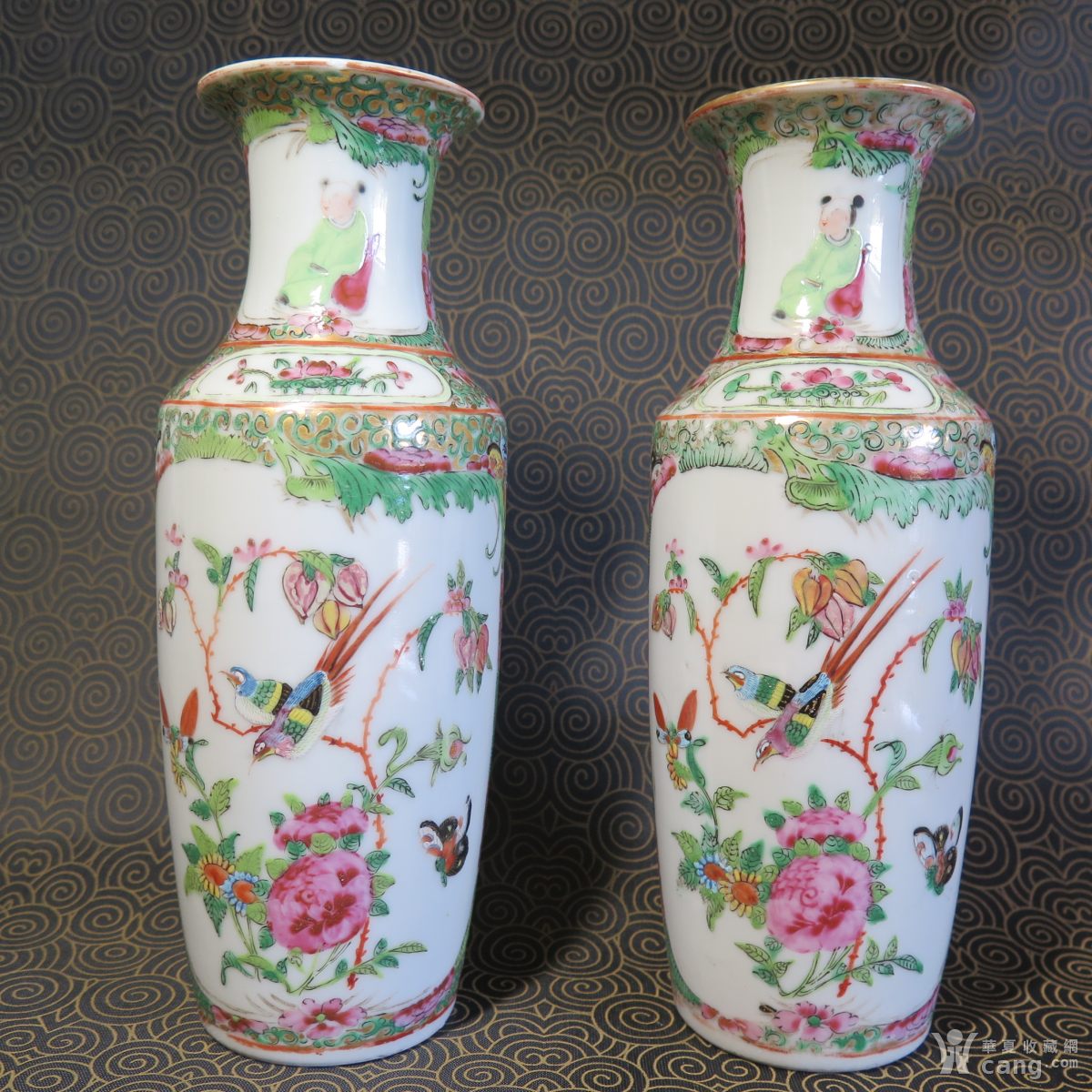 清代同道合家欢粉彩棒槌瓶一对