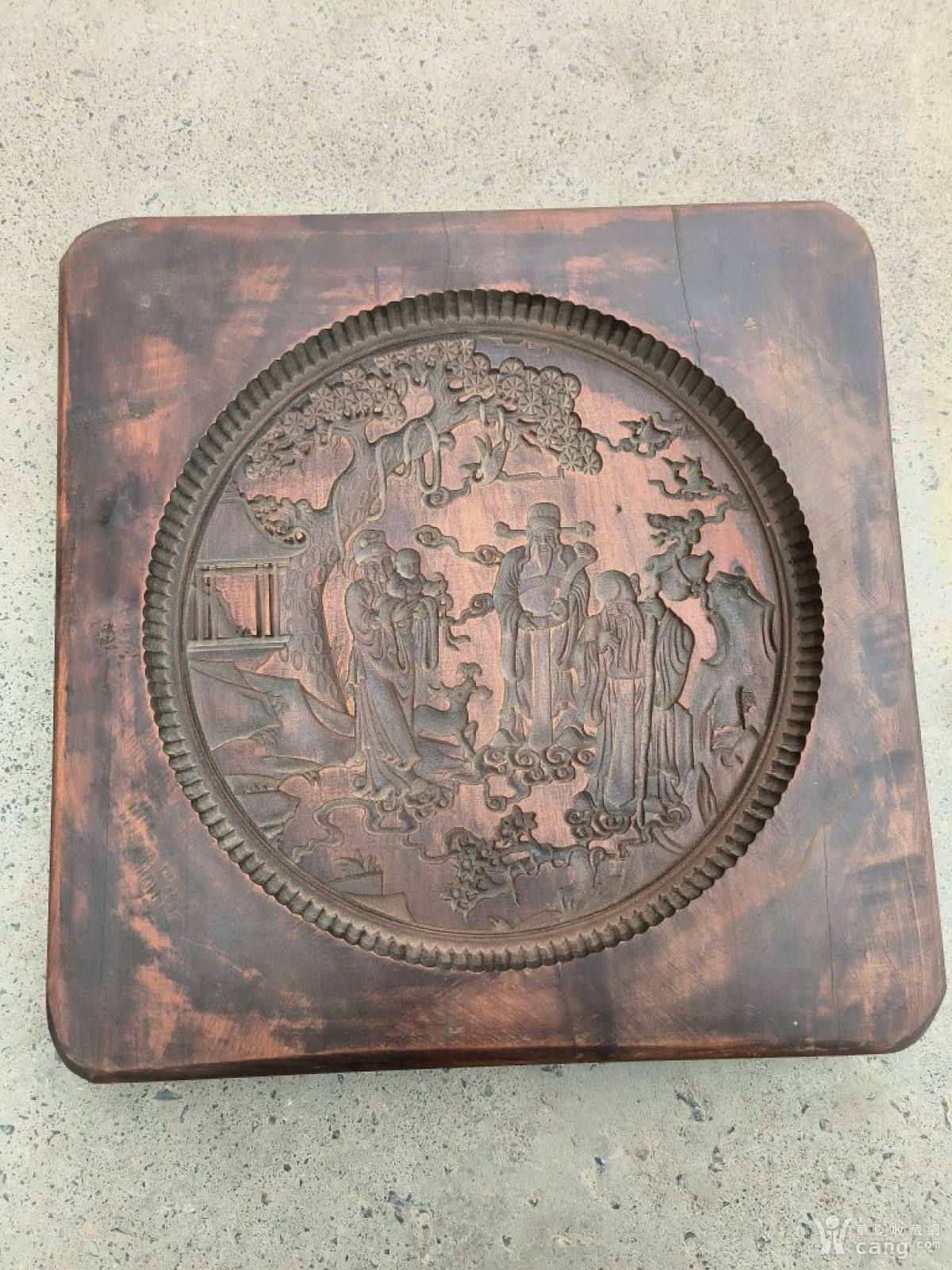 下乡收的清中期老楠木福禄寿三星糕点模具一个,雕工钢劲有力,保