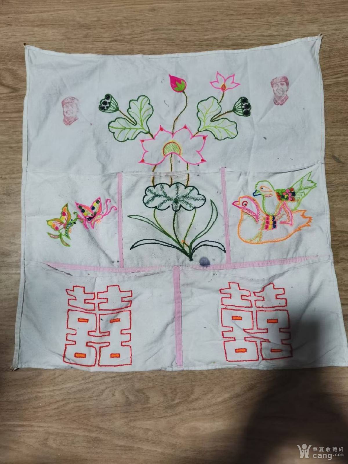 文革时期喜字鸳鸯蝴蝶纹刺绣挂袋
