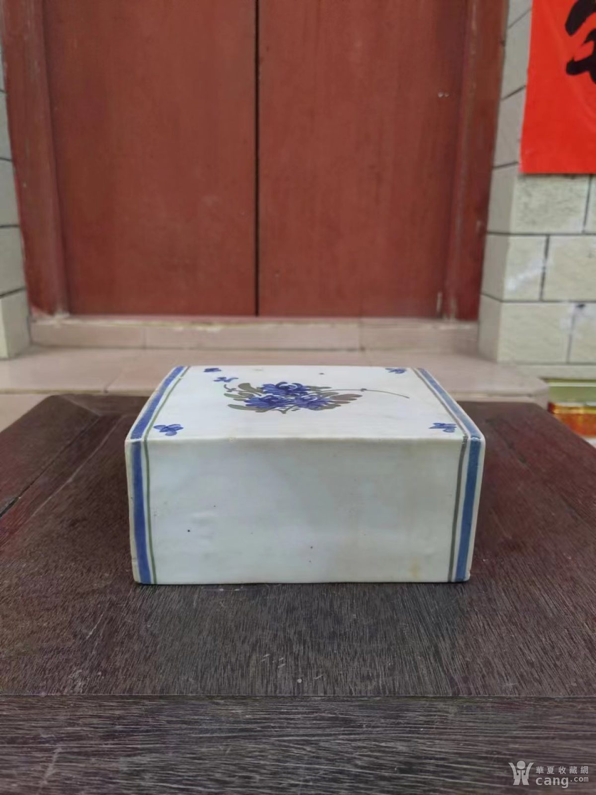 一个民国花卉粉彩双钱老脉枕