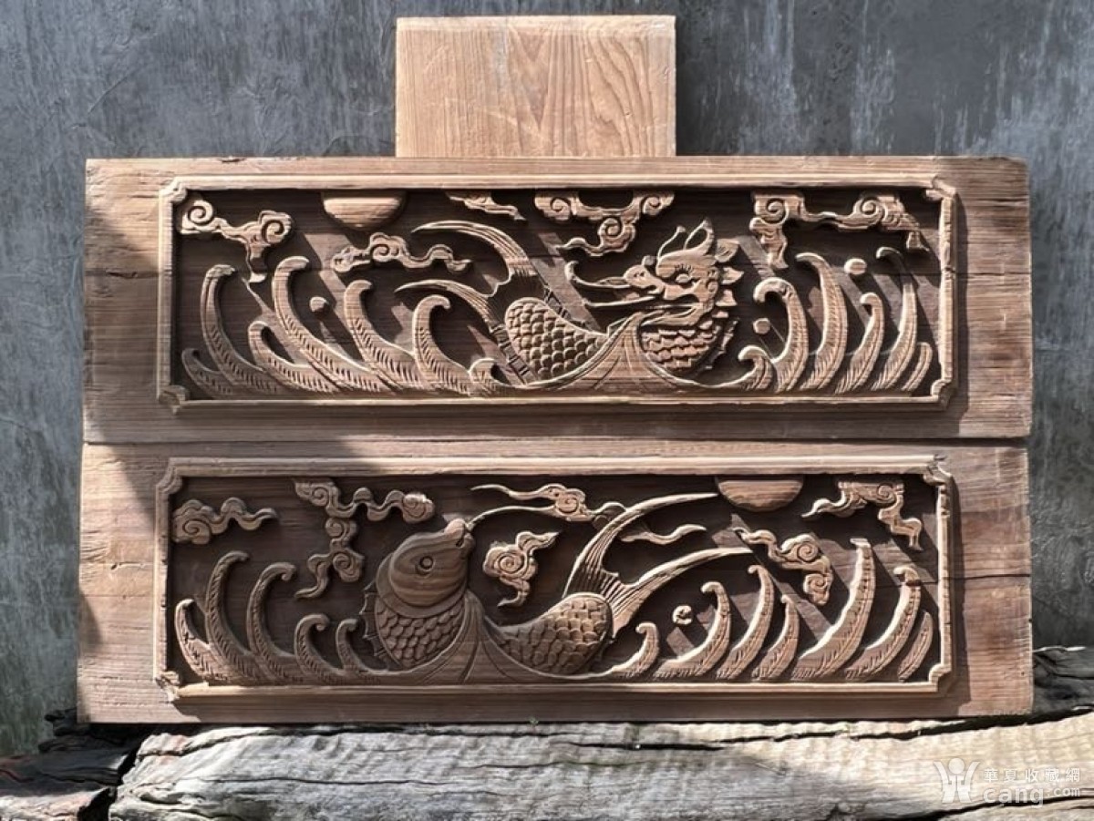 清代鱼化龙清雕老花板老木雕二片沧桑侘寂