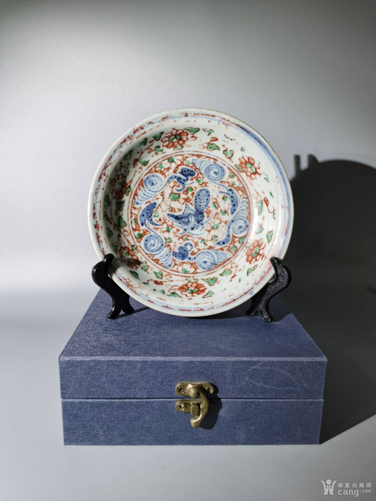 弘治红绿彩缠枝青花鱼藻纹盘