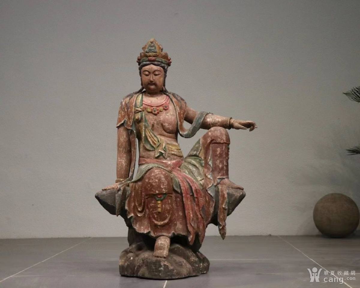 自在观音 尺寸高92厘米.楠木彩绘. 尊佛面庞丰润.宽额丰