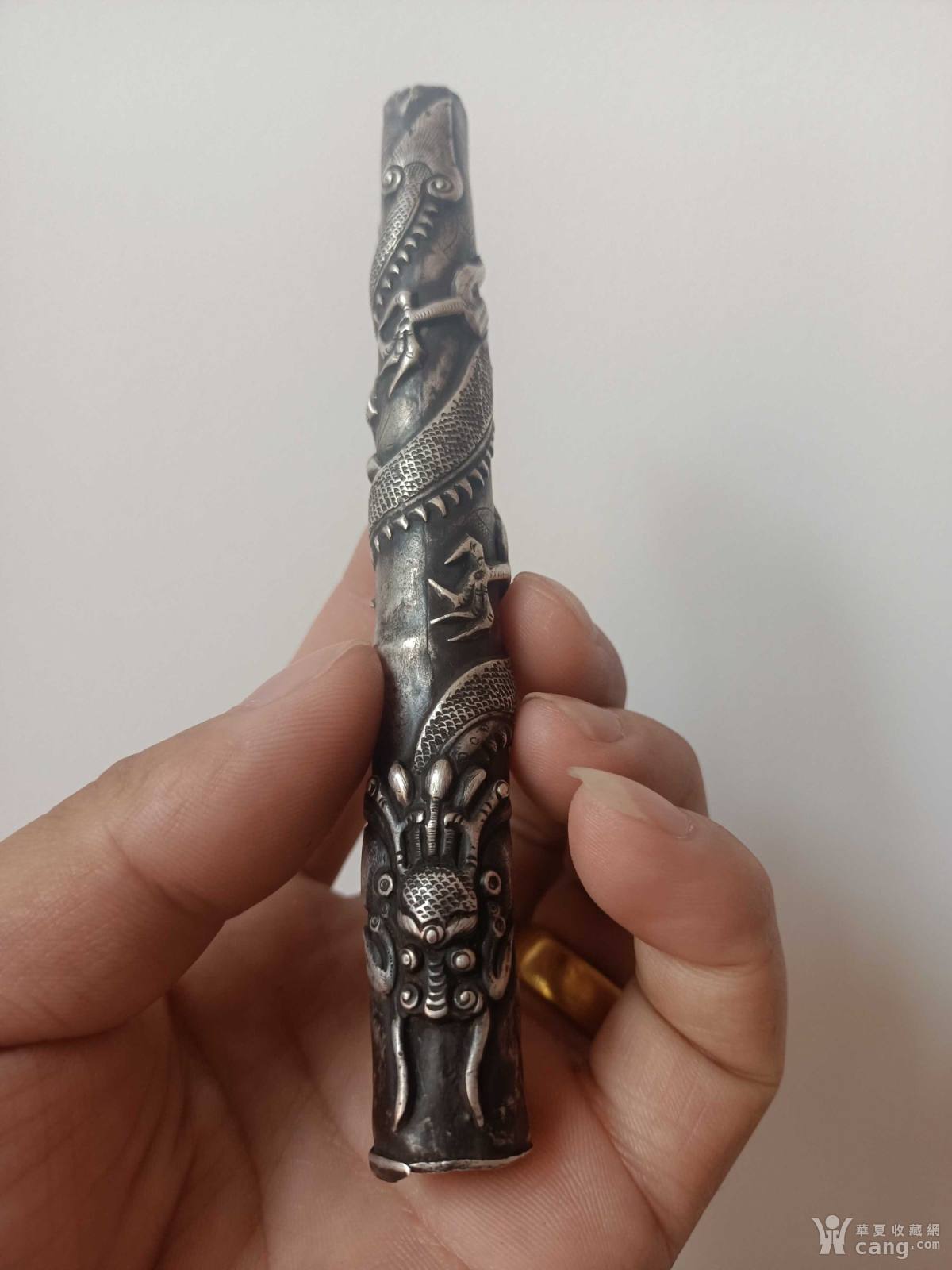 清代老银器,手工暂刻,龙跟管子不是一体的,单独贴上去刻出来的