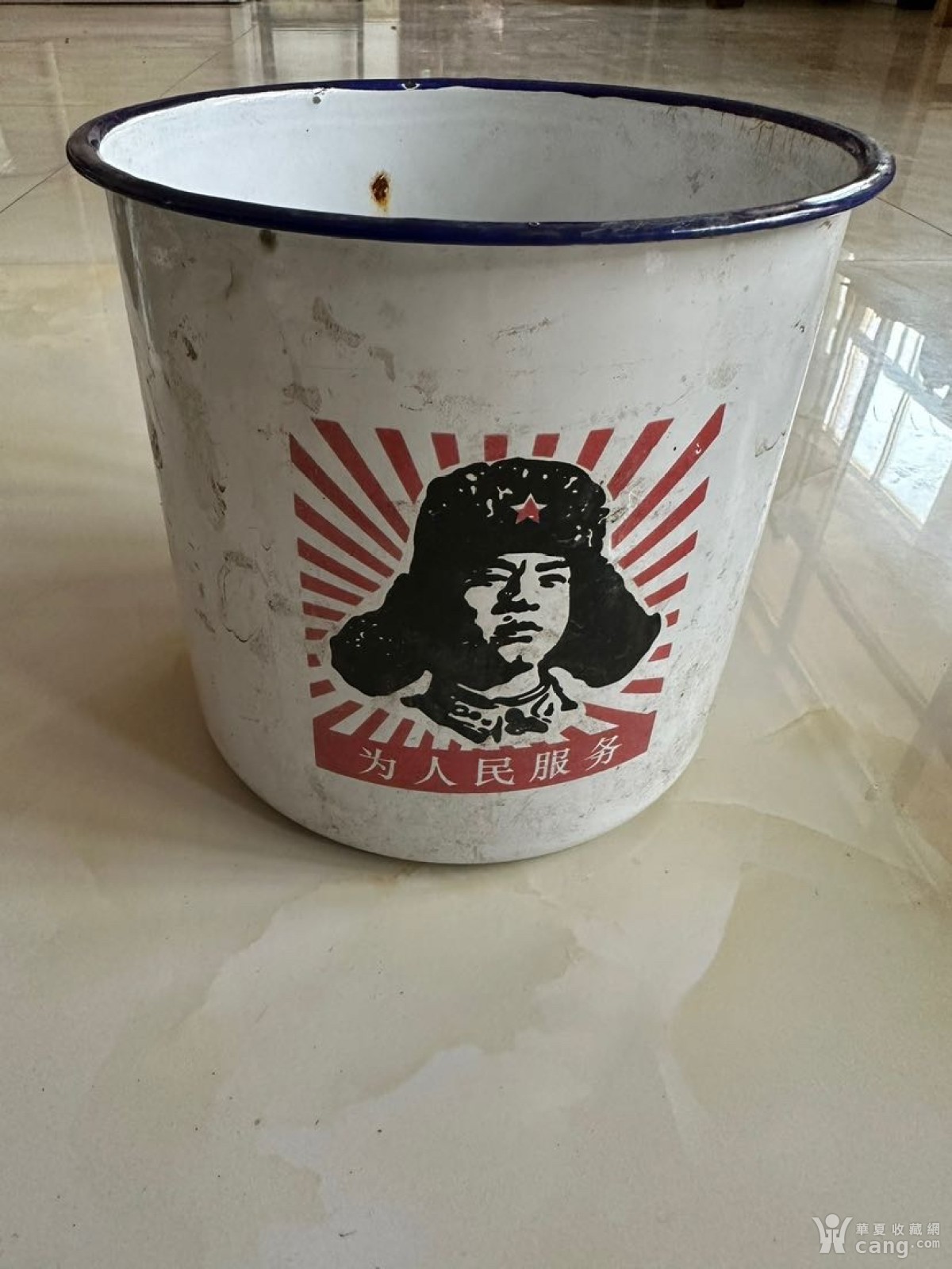 超级大号搪瓷水杯,毛伟人题词:为人民服务,雷锋像,包老