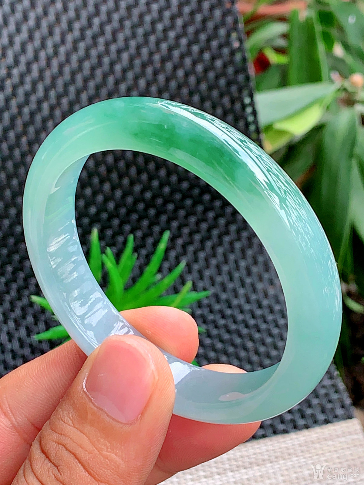 缅甸天然翡翠A货冰透水润飘花宽边手镯57圈口
