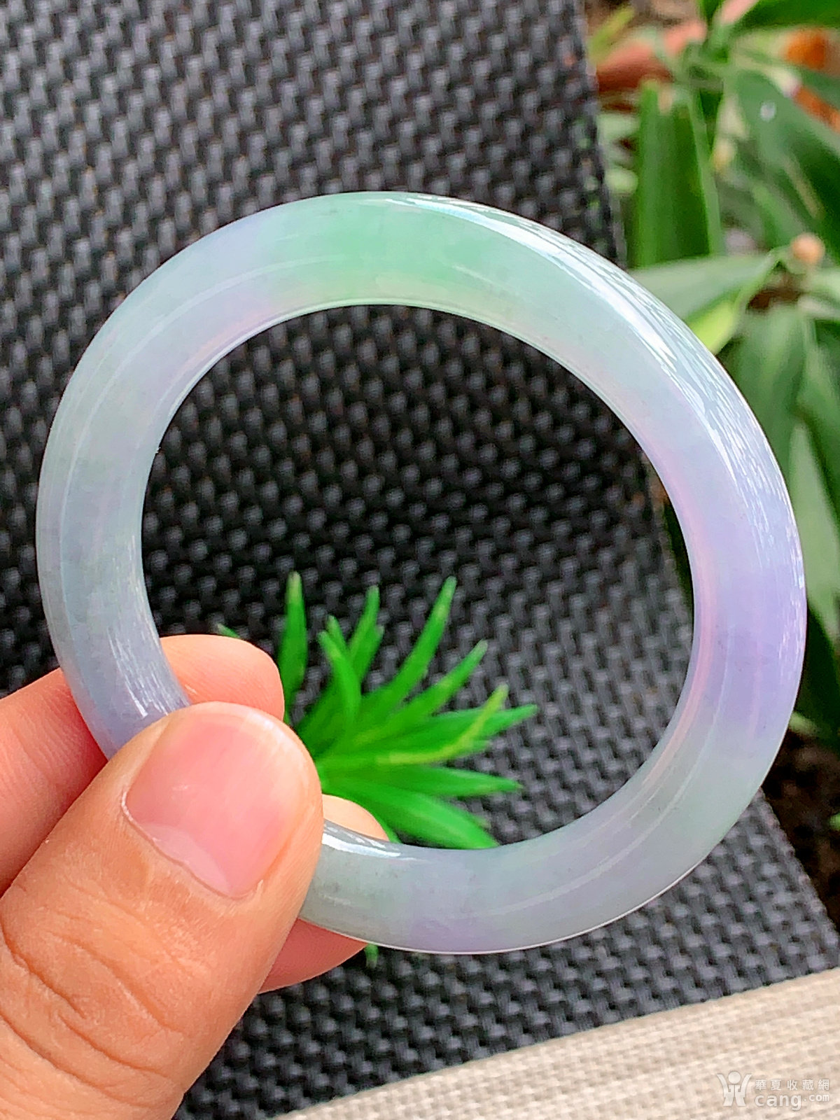 缅甸天然翡翠A货冰透水润春带彩圆条手镯54.3圈口