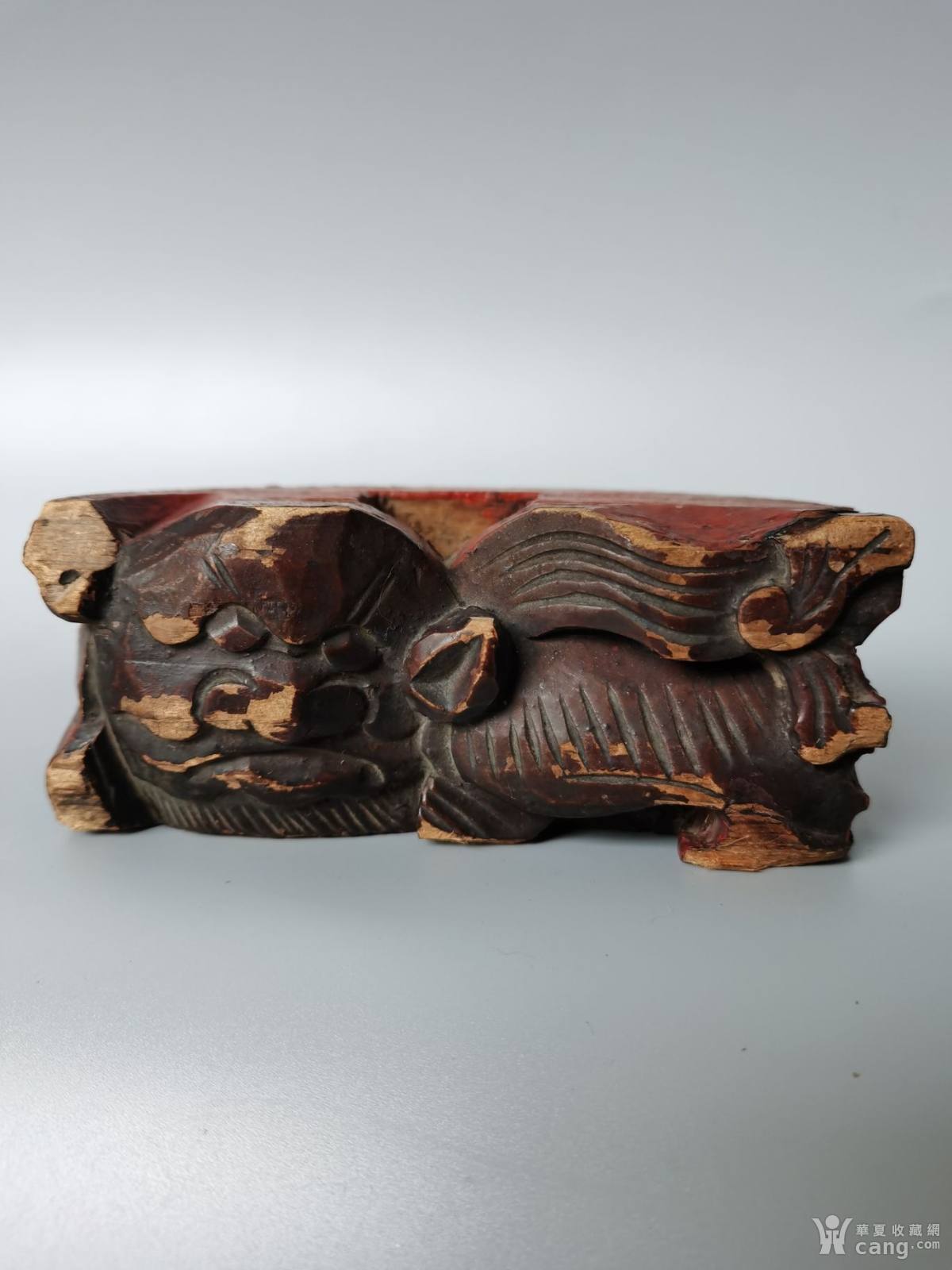 老木雕狮子一对,大小相差一点,