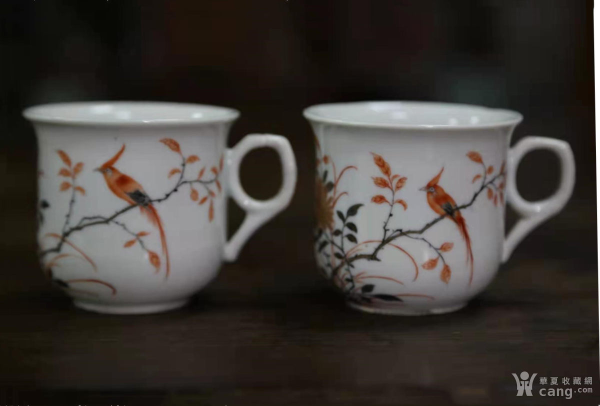 (年底特惠)晚清泛红墨彩加金花鸟杯一对