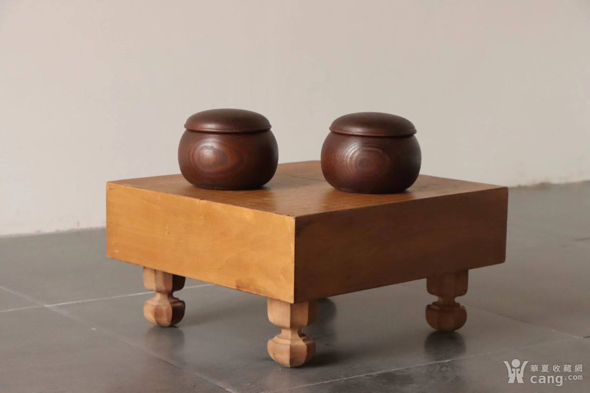 【围棋桌一套】 榉木围棋罐,罐一木整挖,皮壳油亮包浆厚重,浑