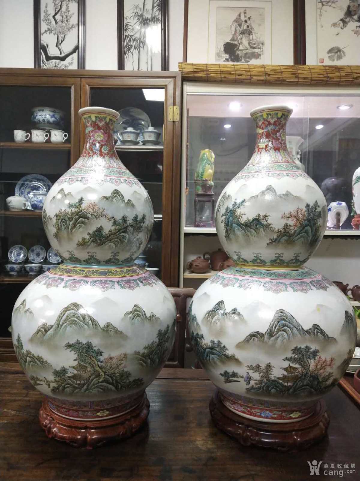 (年底特惠)八十年代超大山水风光图葫芦对瓶