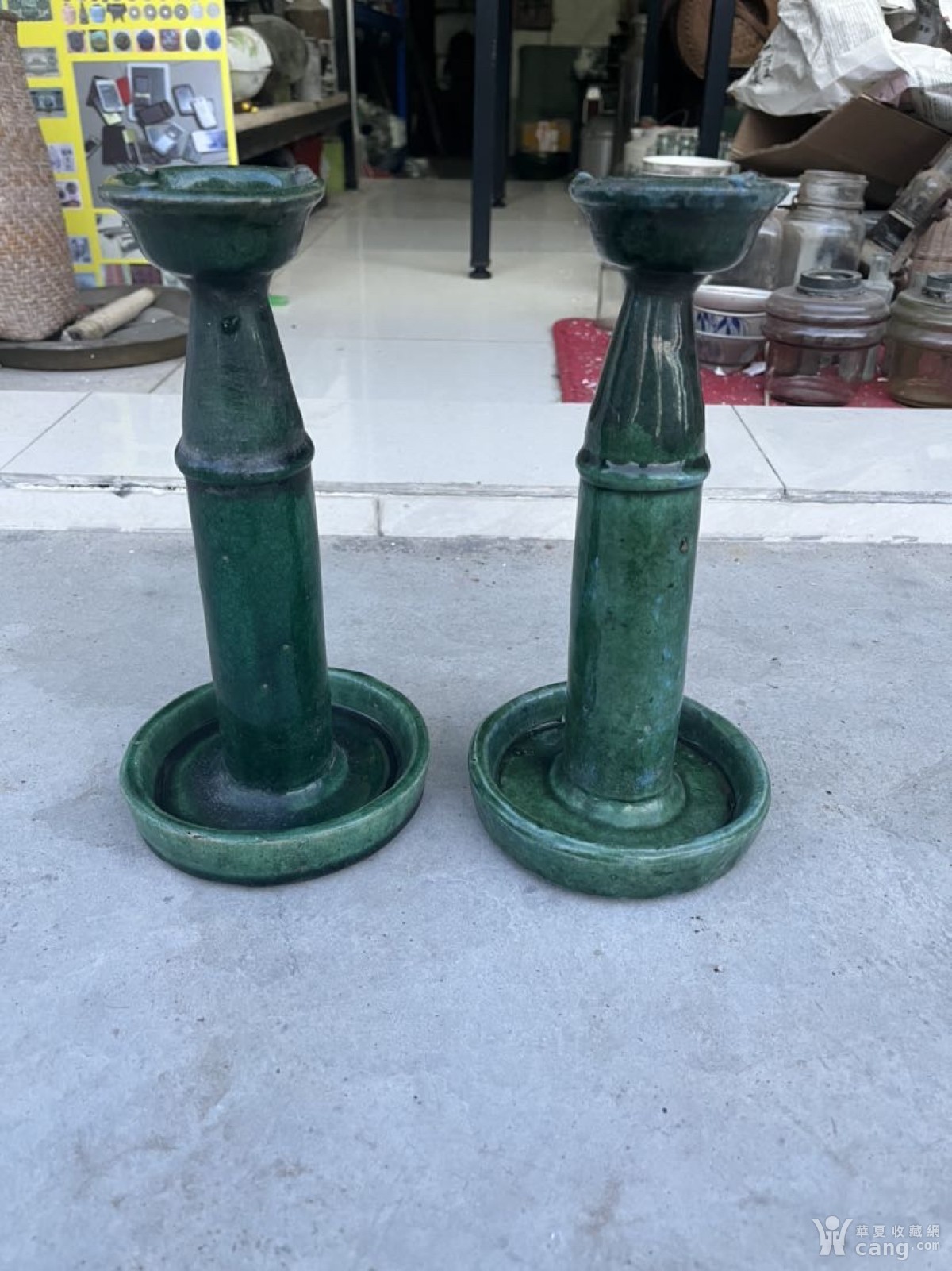 一对晚清石湾油灯
