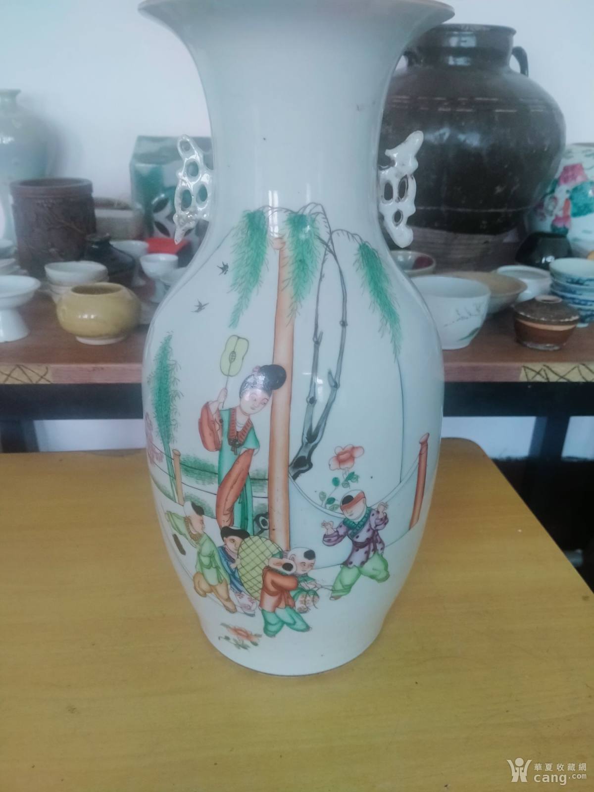 晚清民国新粉彩侍女瓶
