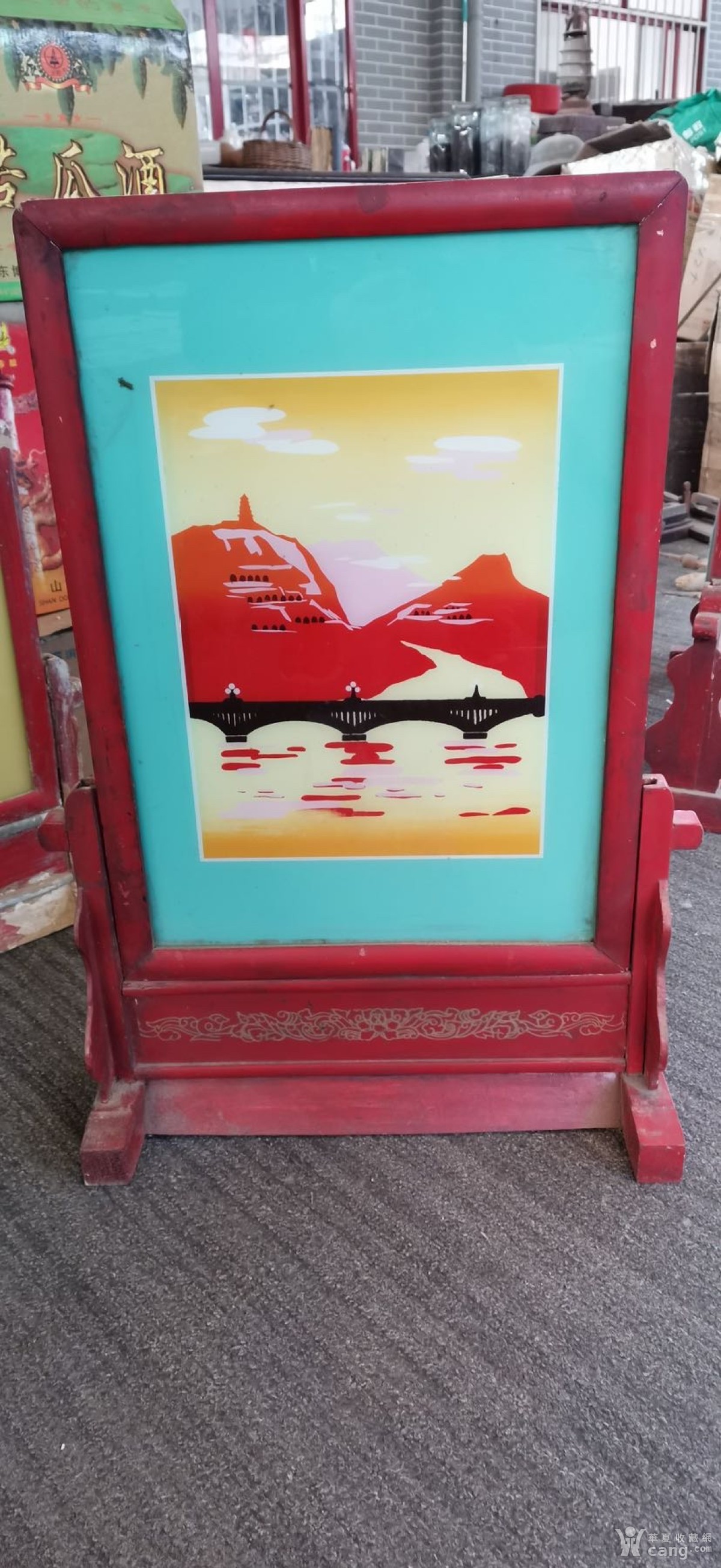 六七十年代延安宝塔山玻璃画座镜1个。完整如图,包老