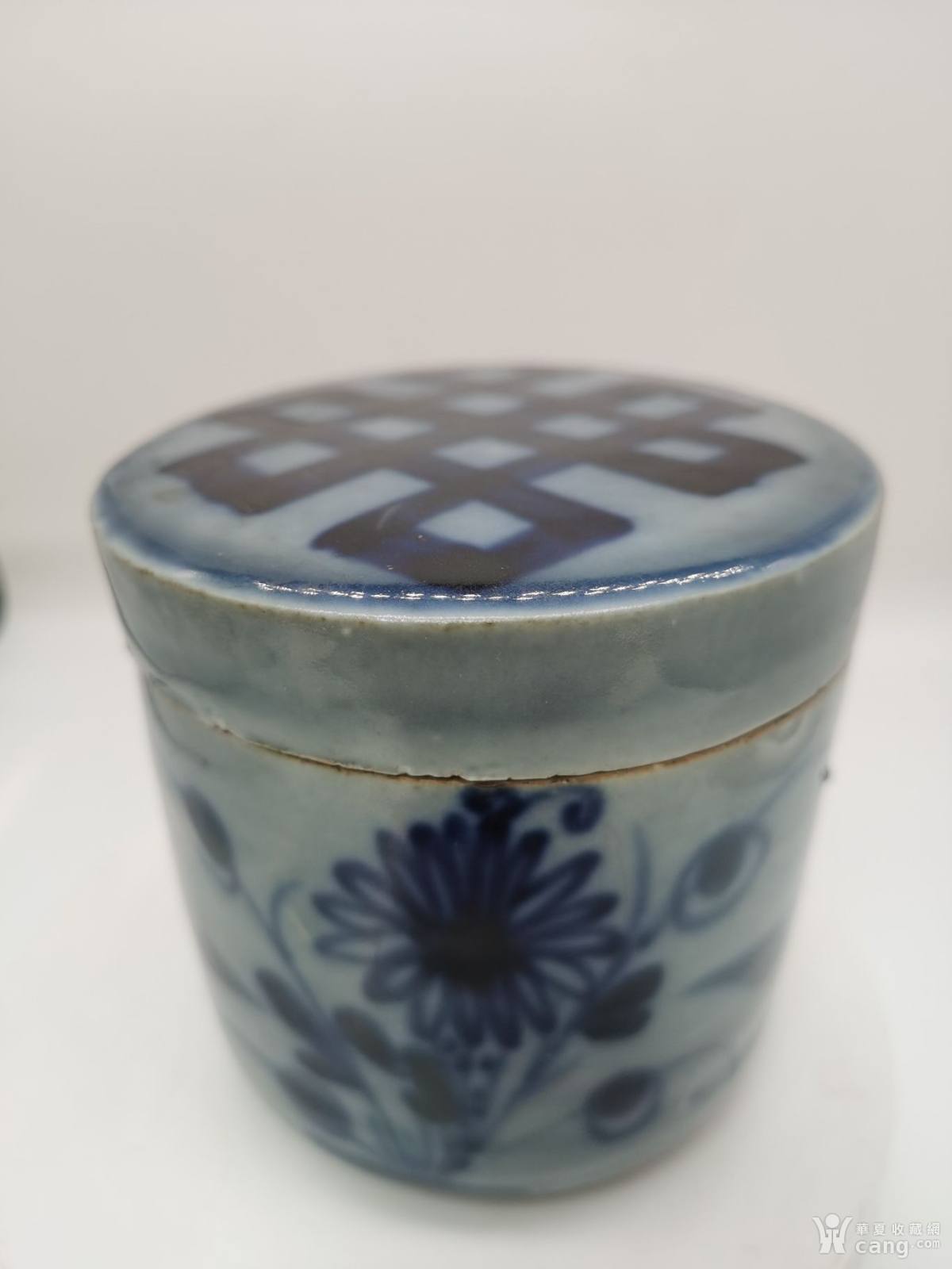 清代青花.花卉园桶式罐