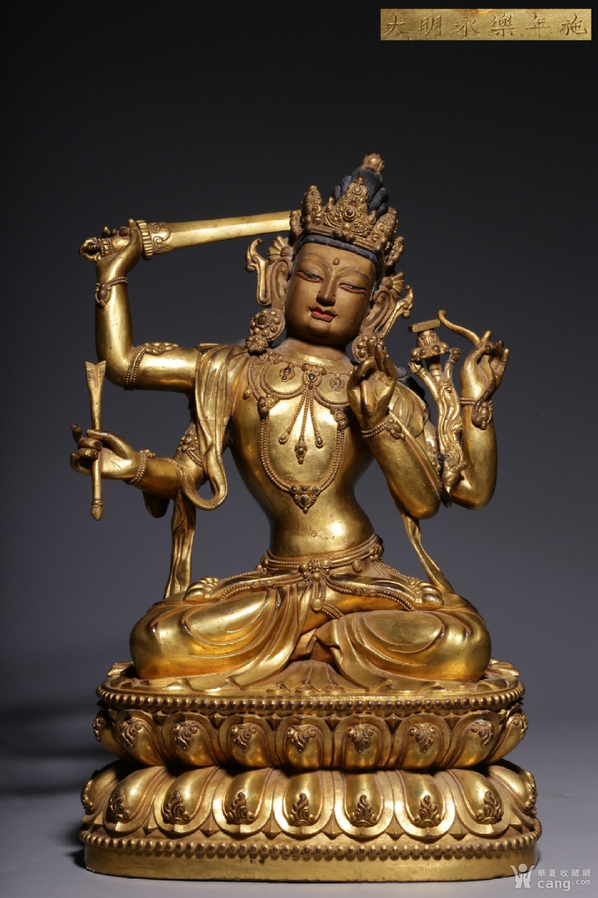 明代,“大明永乐年施”铜鎏金四臂文殊菩萨坐像
