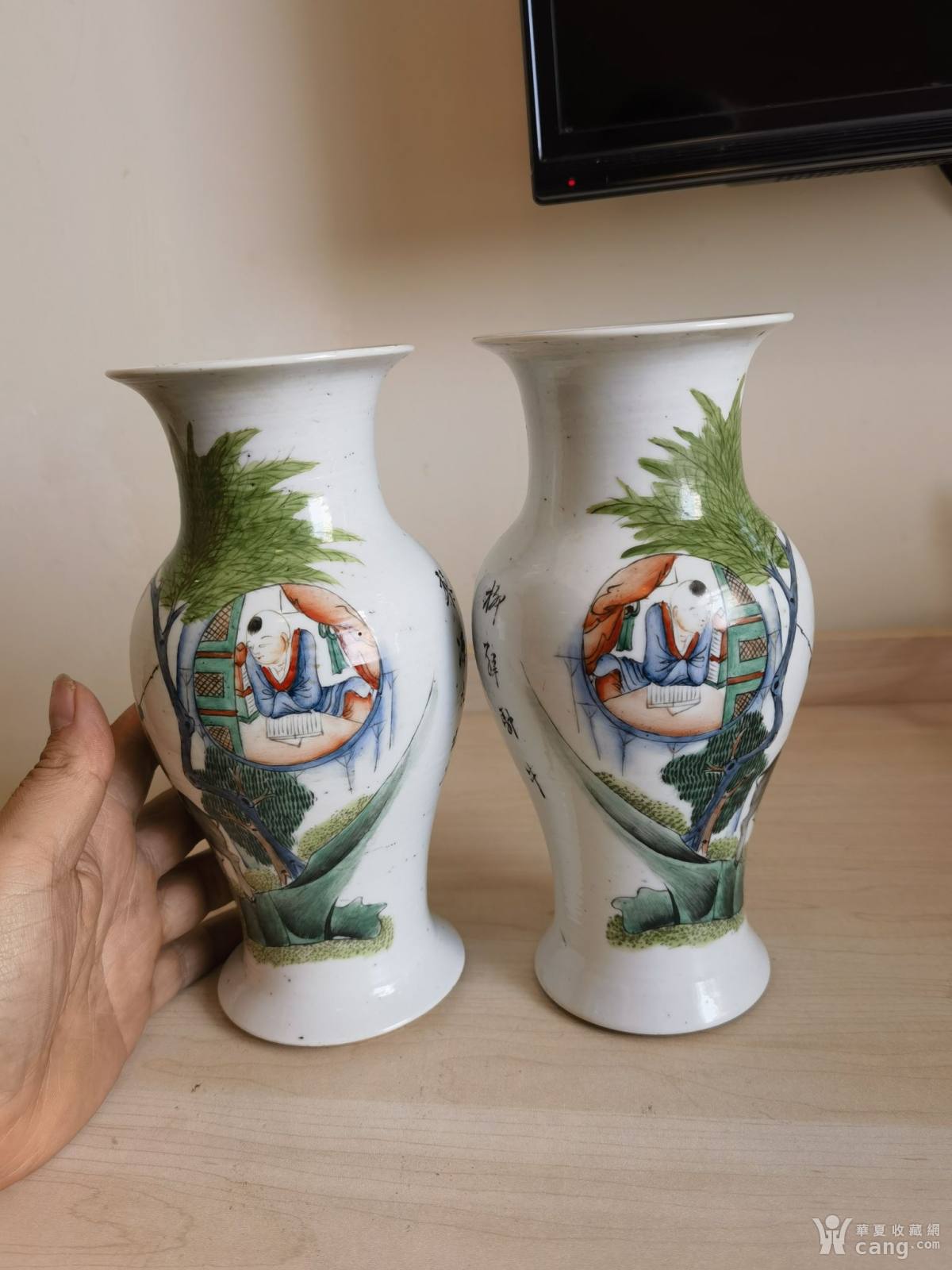晚清民国御窑厂画师黎源太的一对人物花瓶!全美品相,高22.2