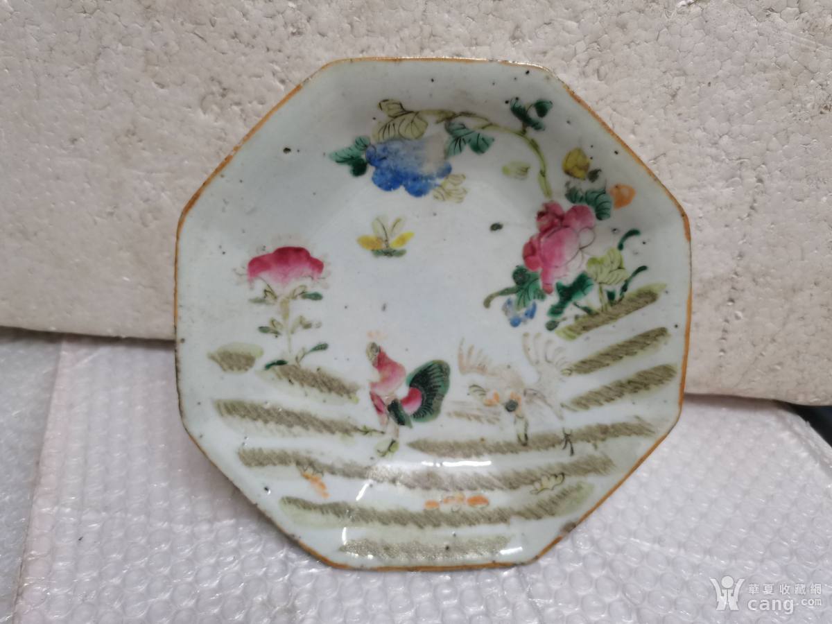 清代官窑堂号款粉彩公鸡八角盘高脚盘低价卖