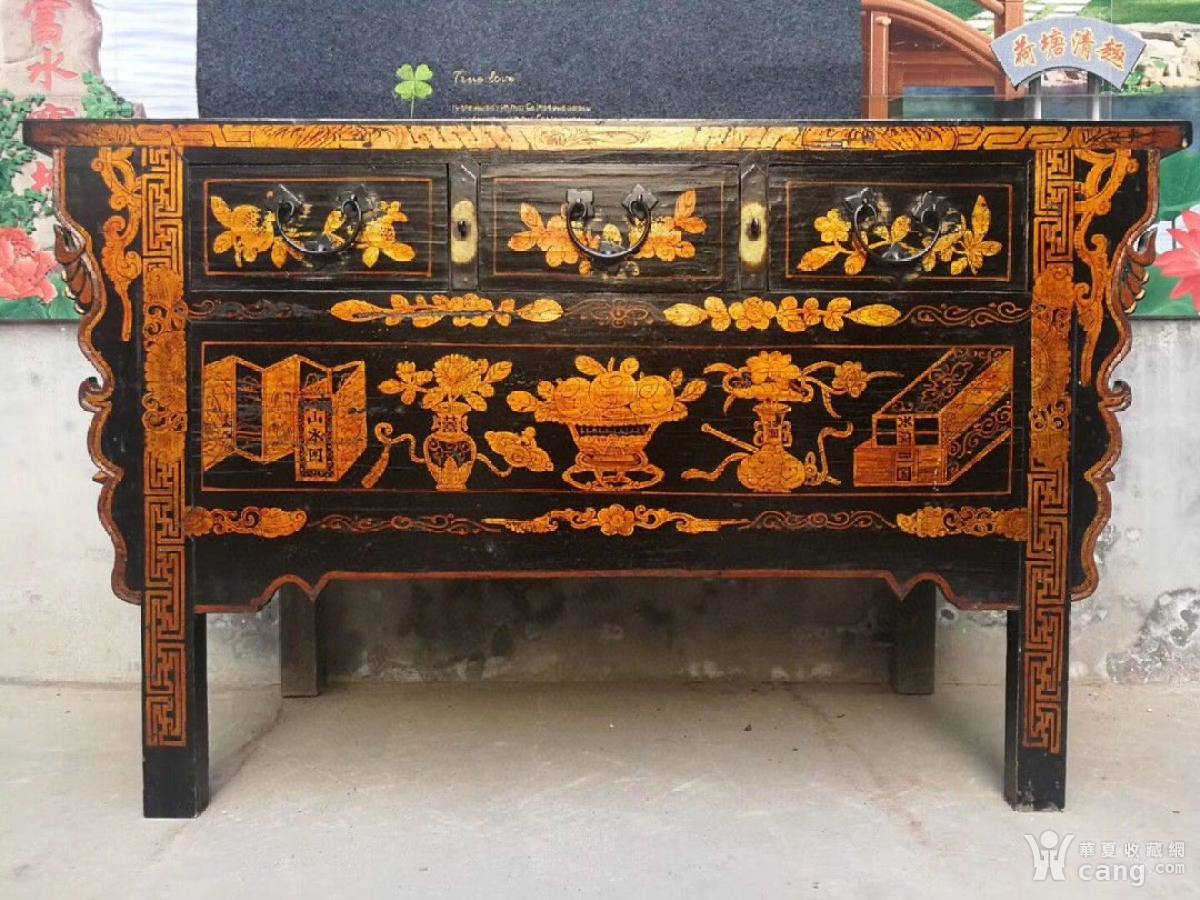 晚清三抽供桌,老榆木,前面满鎏金做画,画工精美绝伦富高贵吉祥
