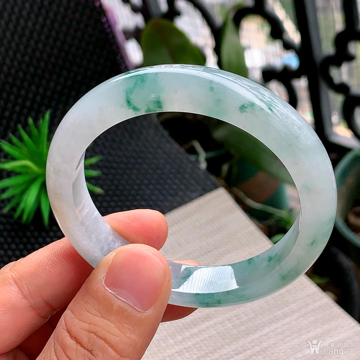 缅甸天然翡翠A货冰透水润飘绿大圈口宽边手镯60圈口