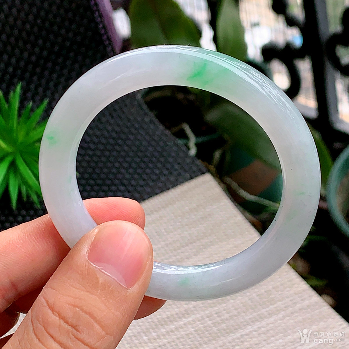 缅甸天然翡翠A货冰透水润飘绿圆条手镯55圈口