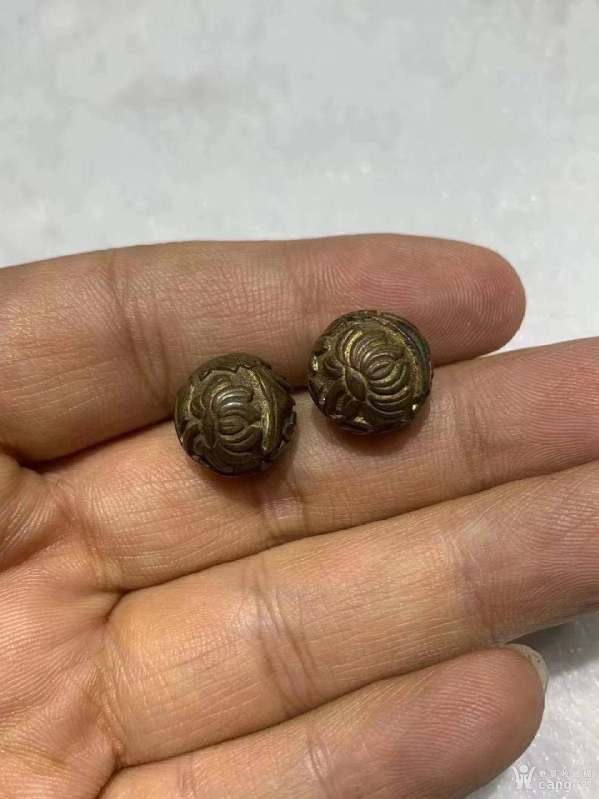 回流创汇的物件和田玉兽面满工珠子一对E155