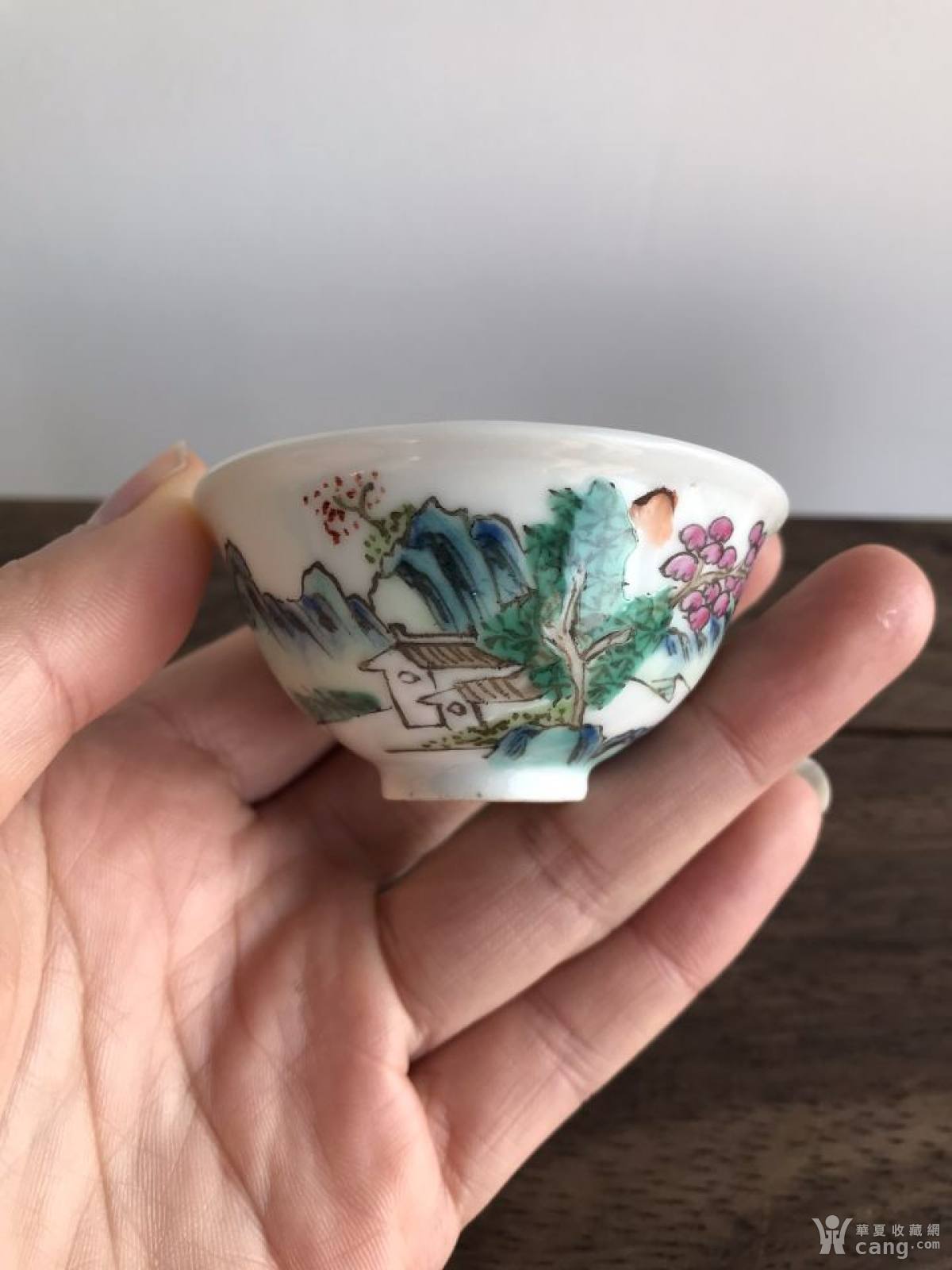 回流粉彩山水茶杯