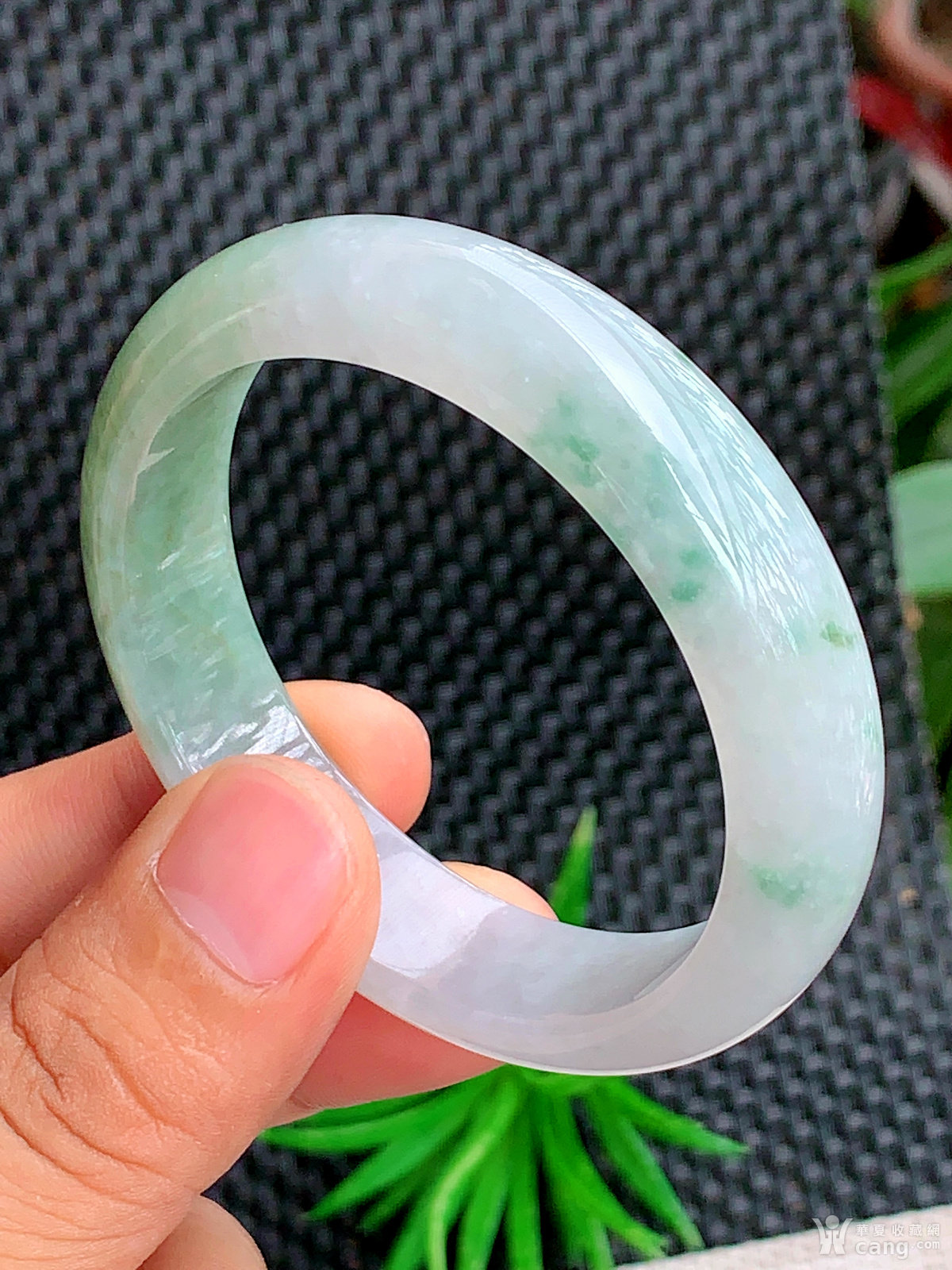 缅甸天然翡翠A货冰透水润飘花宽边手镯56.6圈口