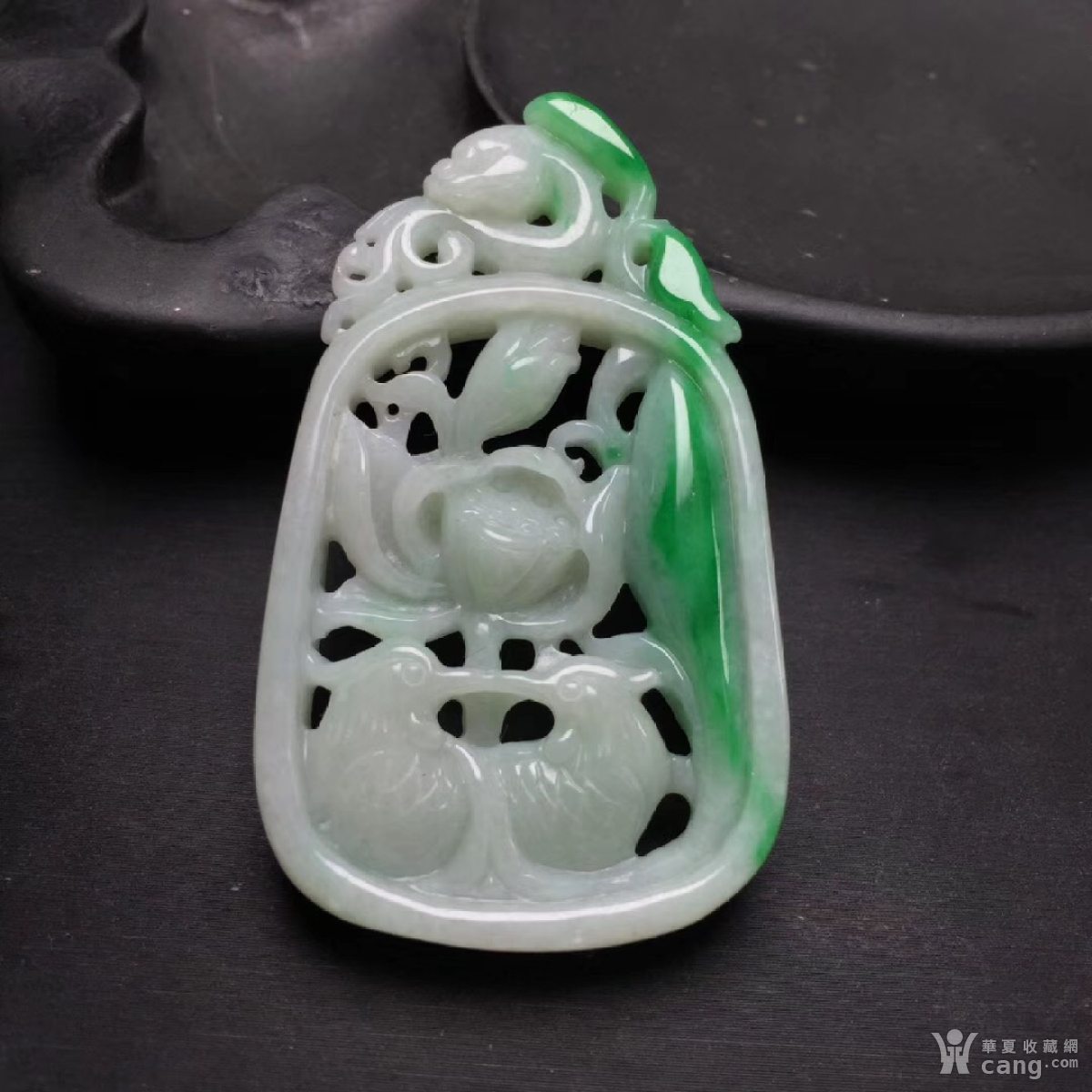 x158创汇期白底青飘阳绿翡翠荷叶鸳鸯挂佩