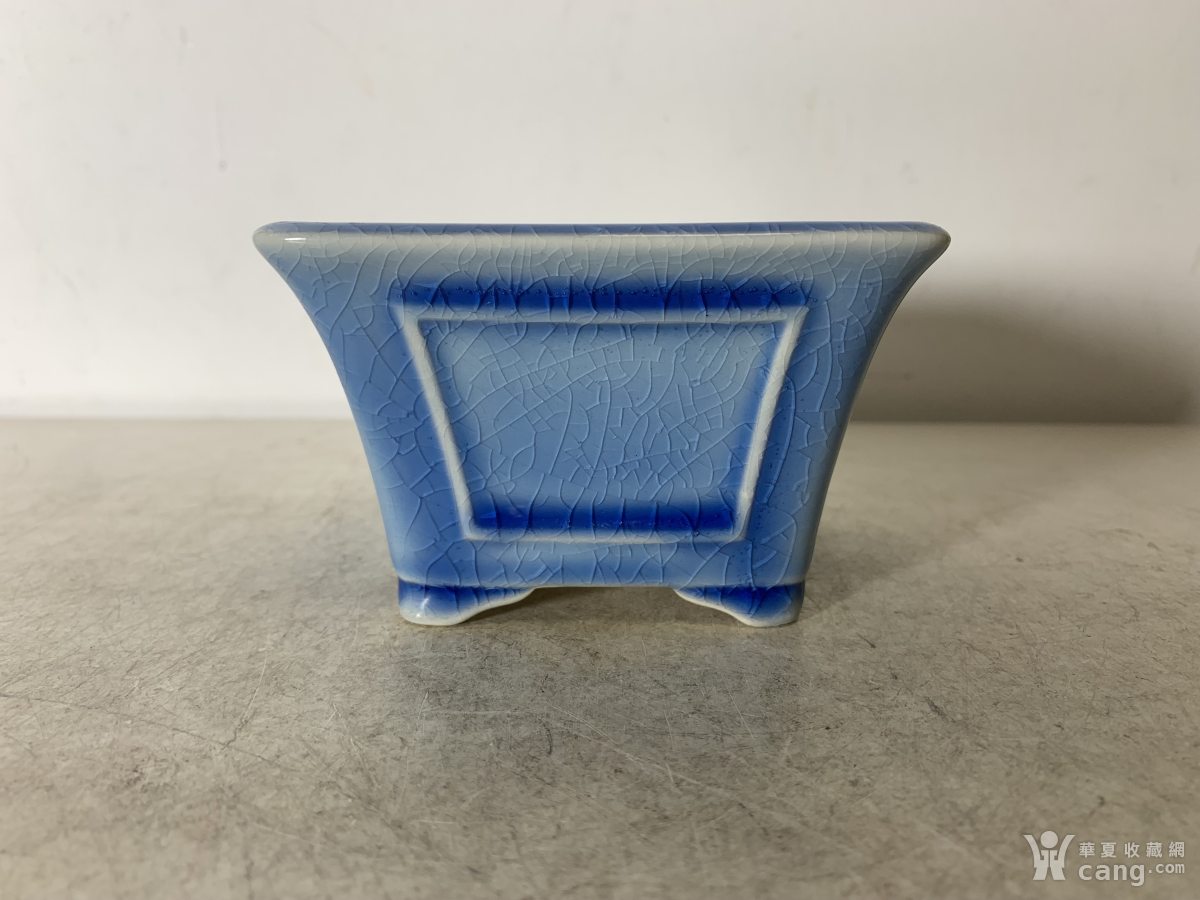 釉色不错的天蓝釉四方开窗白泥菖蒲盆