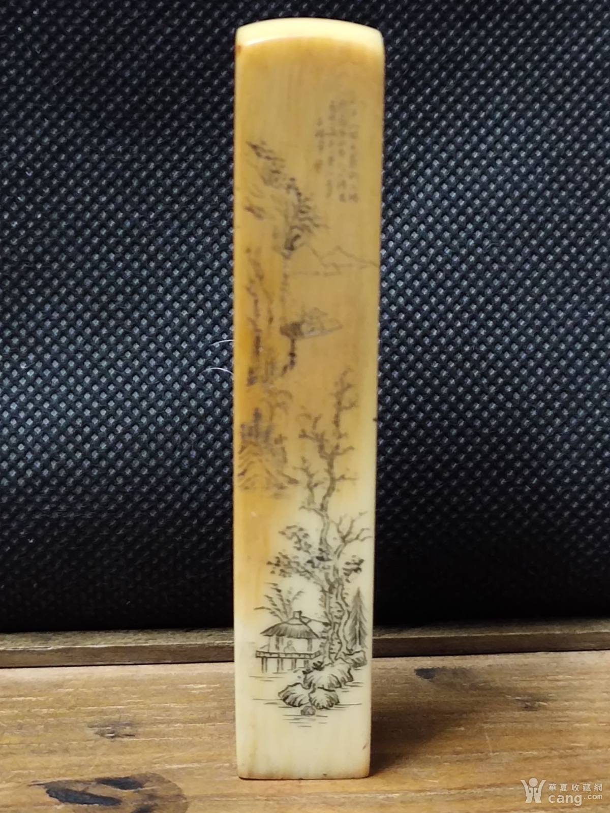 民国抗日英雄王瑞华的老猛犸牙微雕大号山水人物印章一方,