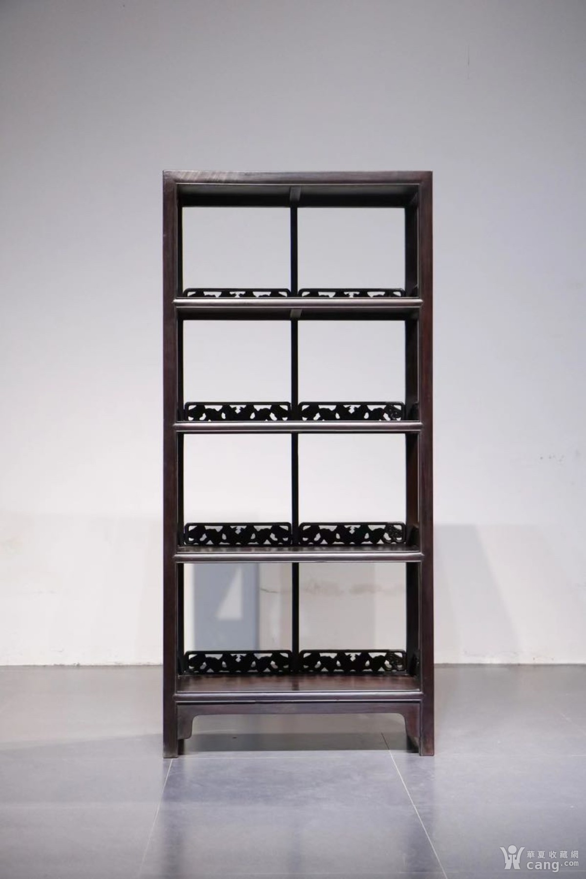 【书房佳器*清代老红木书架】;书架分四格,围栏式,围栏为透雕