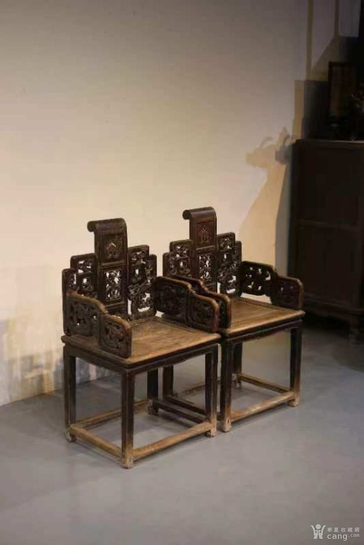 书卷式禅椅 清代早期,搭脑为书卷式,两侧均为透雕两面工艺,