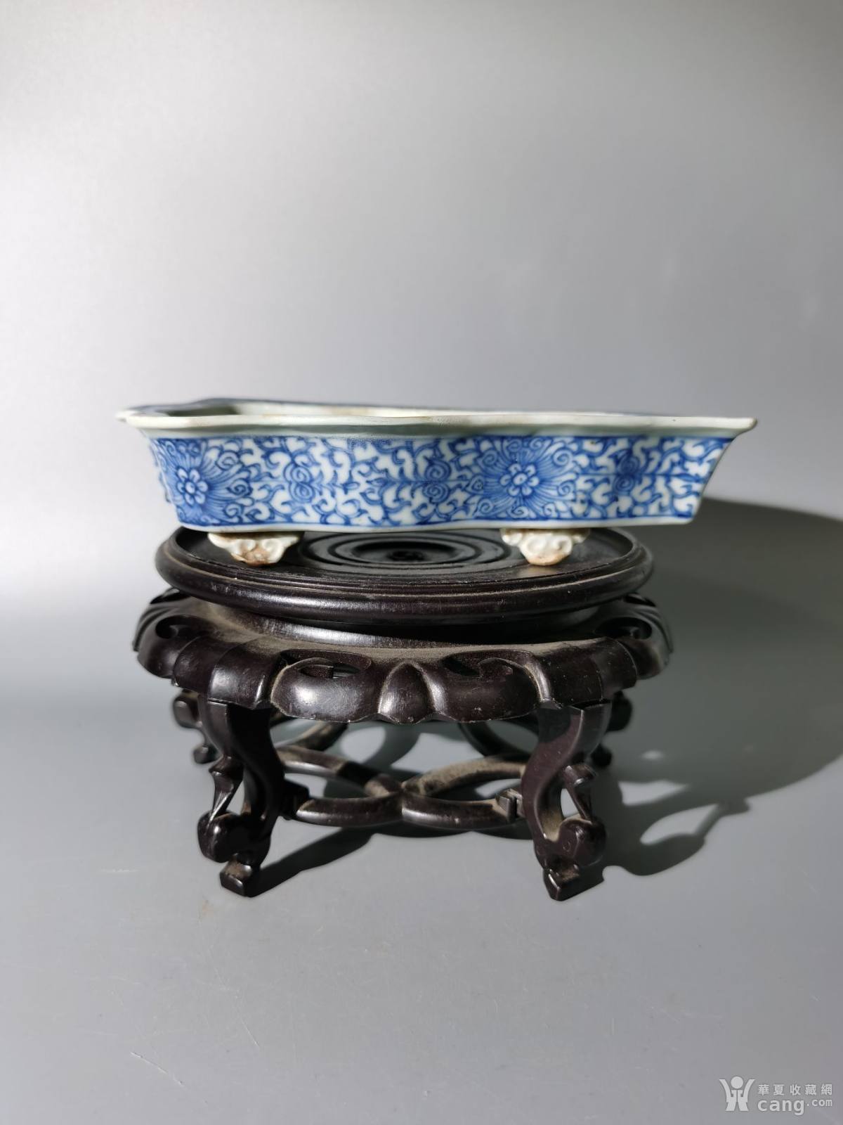 嘉庆青花缠枝莲树叶形水仙盆