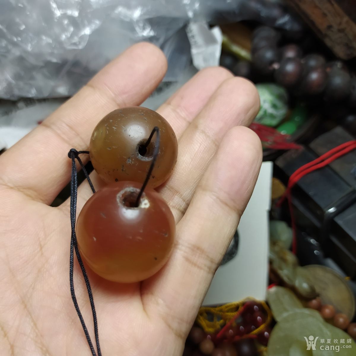 回流创汇的物件和田玉兽面满工珠子一对E155