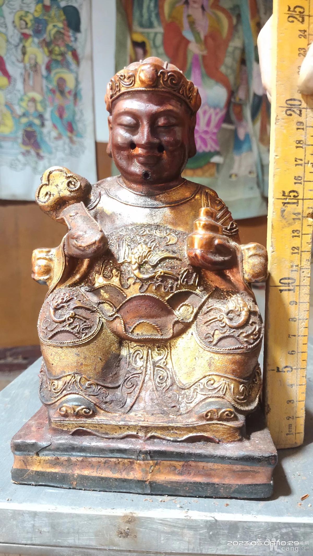 高度20厘米,被香火熏蒸的挺老气的樟木雕土地公财神爷佛像